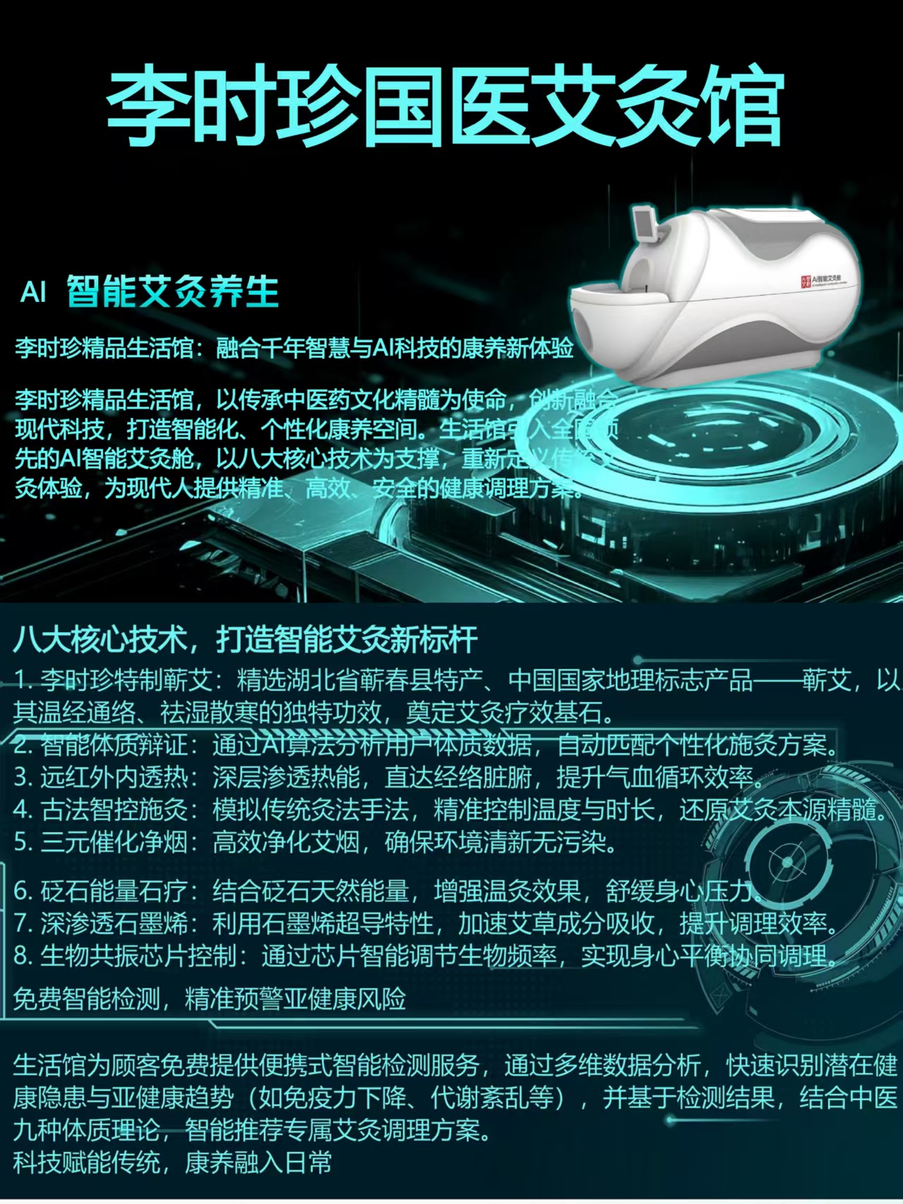 8.生物共振芯片控制:通过芯片智能调节生物频率,实现身心平衡协同调理。免费智能检测,精准预警亚健康风险