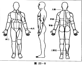 第二组:内关、三阴交、大椎、阿是穴。