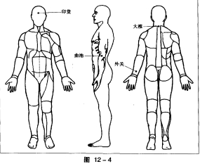 大椎、外关、曲池、印堂。