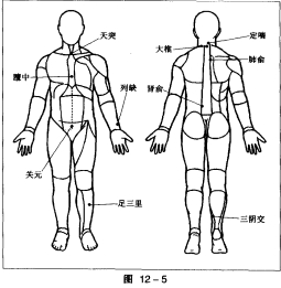 第二组:脾俞、肾俞、列缺、足三里、鱼际。